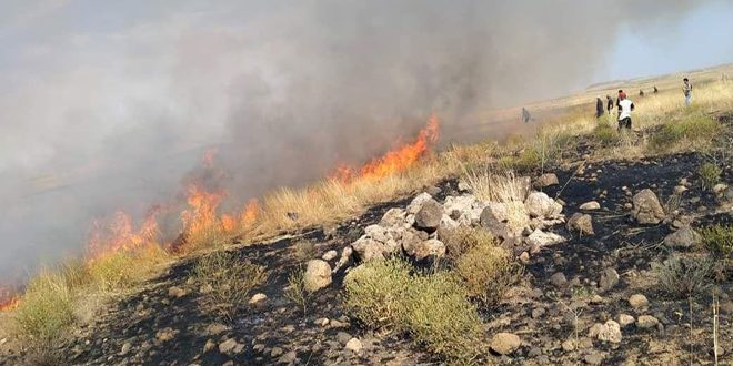 وأخمدت فرق الإطفاء والأهالي حريقين في وقت سابق من الشهر الماضي طالا مساحات واسعة من الأعشاب اليابسة على الحدود السورية الأردنية أحدهما جنوب قرية العانات وخربة القرعة وآخر جنوب قرية ذيبين بريف محافظة السويداء الجنوبي الغربي الحق أضرارا بحقول شعير بالمنطقة.