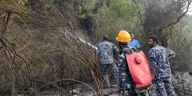 أخمد عناصر فوج الإطفاء وعناصر دائرة الحراج بمديرية الزراعة والدفاع المدني بالتعاون مع الأهالي حريقاً اندلع عصر اليوم في قرية بسورم بمحافظة طرطوس وامتد إلى أراض زراعية في قرية بيت زينة وأتى على مساحة تقدر بنحو أربعة دونمات.
