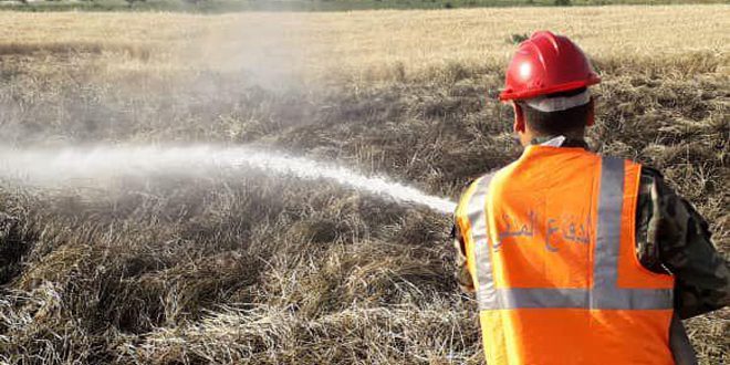 تمكن عناصر الدفاع المدني بحمص اليوم بالتعاون مع فوج الإطفاء والزراعة من إخماد حريق اندلع في حقول قمح بقرية كفر عبد في ريف حمص.