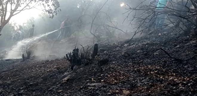 وأشار صقور إلى أنه تمت السيطرة على الحريق رغم صعوبة تضاريس الأرض الوعرة والانحدارات القاسية وتعمل قوى الإطفاء الآن على تبريده وشارك بالإخماد أربع إطفائيات تابعة للزراعة وجرار وأربع فرق حرائق وسيارتا إطفاء تابعة للدفاع المدني.