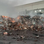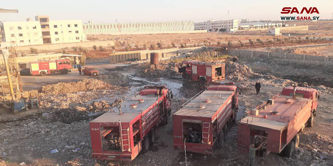 أخمد عناصر فوج إطفاء حلب اليوم حريقاً اندلع في ساحة منشأة لصناعة الورق من النفايات الورقية الواقعة ضمن المنطقة