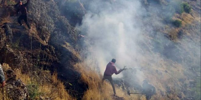 إخماد حريق طال مساحات مزروعة بأشجار مثمرة في منطقة ضهر الجبل بالسويداء