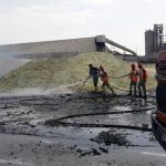 إخماد حريق نشب في ساحات تجمع مادة الكبريت بمعمل السماد بحمص