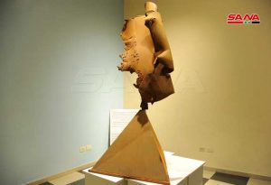 وأوضح المليح أن استخدام خشب الزيتون في أغلب أعمال المعرض جاء لارتباط هذه الخامة بإرثنا وثقافتنا الممتدة في التاريخ ولكن العمل الذي لفت انتباه زوار المعرض هو من شظايا قذيفة من تفجير إرهابي وقع في منطقة العدوي عام 2013 حيث أعاد إخراجها وتقديمها بطريقة فنية معتمداً على التوازن القلق في عرضها لتكون إرثا يجسد معاناتنا خلال سنوات الحرب وليكرسها كشاهدة على الكثير من الأرواح التي أزهقتها.