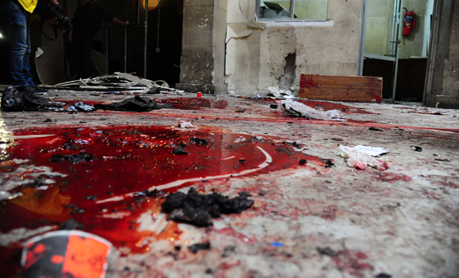 وأشار المصدر إلى أن إرهابيا انتحاريا يرتدى لباسا عسكريا كان معه بندقية وقنبلة وبعد أن استوقفه الحرس عند باب السور الخارجي لمبنى قصر العدل وقاموا باستلام البندقية والقنبلة ركض مسرعا باتجاه باب بهو القصر العدلي حيث يوجد عدد كبير من المراجعين مستغلا الازدحام واستطاع الوصول إلى الباب الخارجي حيث قام بتفجير نفسه.