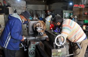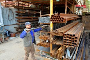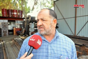 مسلم عياش أحد حرفيي حديد البناء أوضح أن الوضع الخدمي في المنطقة الصناعية اليوم أفضل بكثير وخاصة وضع الكهرباء حيث أعفيت المنطقة الصناعية من التقنين الشديد ويكتفى بقطع الكهرباء ساعة أو ساعتين خلال النهار وهو ما يسمح للحرفيين بمواصلة أعمالهم.