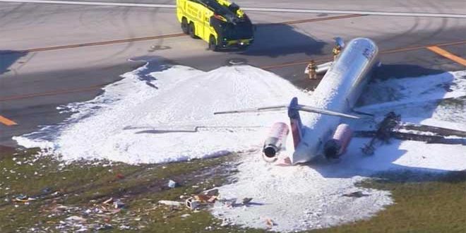 ونقلت شبكة (سي إن إن) الإخبارية الأمريكية عن المتحدث باسم المطار غريغ شين قوله اليوم إن “النيران اشتعلت اثناء هبوط الطائرة القادمة من سانتو دومينغو عاصمة الدومينيكان وعلى متنها 130 راكباً و10 من أفراد الطاقم” مشيراً إلى أن سبب الحريق يعود إلى خلل في معدات الهبوط.