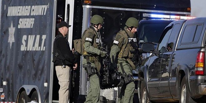 أعلنت الشرطة الأمريكية إصابة ضابط في الشرطة وشخص آخر في عملية احتجاز رهائن وقعت أمس قبل أن تتمكن من السيطرة على الحادث الذي دفع بالسلطات الى إخلاء منازل وشركات قرب متجر للدراجات النارية في ولاية ويسكونسن الأمريكية.