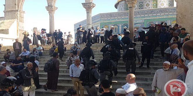 وذكرت وكالة وفا أن المئات من المستوطنين وقوات الاحتلال اقتحموا الأقصى من جهة باب المغاربة ونفذوا جولات استفزازية في باحاته فيما حاصرت قوات الاحتلال المعتكفين داخل المصلى القبلي أحد مصليات المسجد الأقصى وألقت قنابل عليهم واعتدت عليهم ما أسفر عن إصابة عدد منهم بجروح كما اعتقلت خمسة من المعتكفين في المسجد.