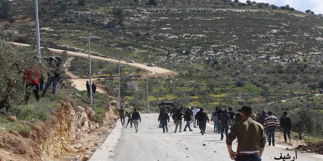 وأصيب عدد من الفلسطينيين أمس جراء قمع قوات الاحتلال مظاهرة مناهضة للاستيطان في جبل عيبال ببلدة عصيرة الشمالية في نابلس.