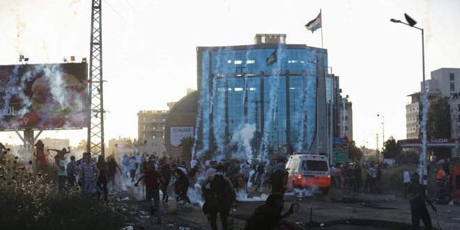 وذكرت وكالة وفا أن قوات الاحتلال أطلقت قنابل الغاز السام على المشاركين في المظاهرة التي خرجت بمناسبة مرور 73 عاماً على نكبة الشعب الفلسطيني ما أدى إلى إصابة عدد منهم بحالات اختناق.