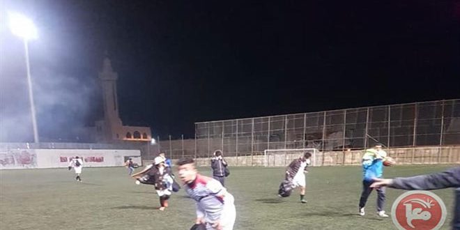 إصابة عدد من اللاعبين الفلسطينيين بالاختناق جراء إطلاق الاحتلال لقنابل الغاز