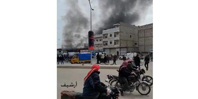 إصابة مدنيين اثنين وعدد من مرتزقة الاحتلال التركي بانفجار سيارة في محيط مدينة الباب بريف حلب