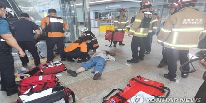 وذكرت وكالة يونهاب أن أحد السلالم المتحركة الصاعدة في محطة مترو الأنفاق في سيونغنام على بعد حوالي 20 كيلومتراً جنوبي سيئول تحرك بشكل عكسي، ما أدى إلى إصابة ثلاثة أشخاص بجراح خطيرة في الظهر والرجلين، ونقلهم إلى مستشفى قريب، فيما يخضغ 11 آخرون للعلاج من إصابات طفيفة نسبياً.