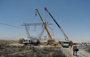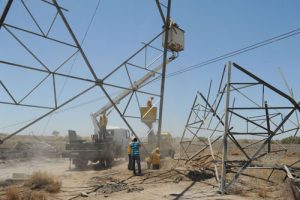 إصلاح أبراج شبكة التوتر العالي في قرية الميدعة بريف دمشق