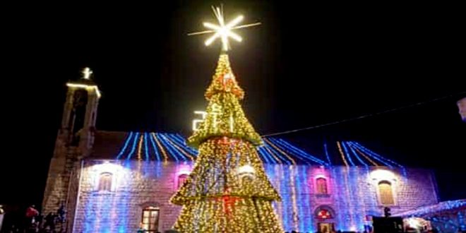 بمناسبة اقتراب عيد الميلاد المجيد أضيئت مساء اليوم شجرتا الميلاد في بلدتي قطينة وربلة بريف حمص الجنوبي الغربي.