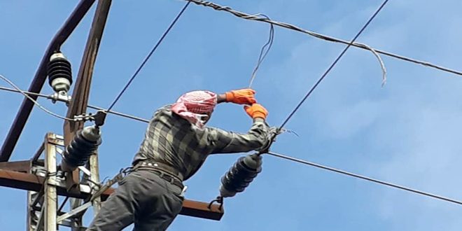 أنهت الورشات الفنية التابعة لشركة كهرباء الحسكة إصلاح خط التوتر 20 ك.ف المغذي لمحطة مياه علوك بريف رأس العين.