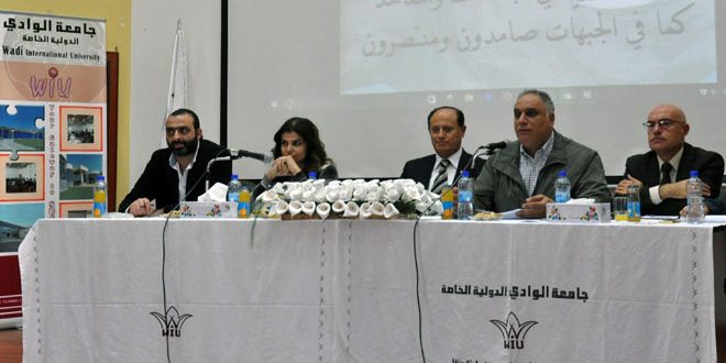 ودعا الطلبة إلى تمثيل الاتحاد الوطني لطلبة سورية في مجلس الجامعة أسوة بباقي الجامعات الحكومية وإحداث اختصاصات جديدة تواكب سوق العمل وروح العصر مع تامين كوادر علمية تدريسية وبناء مدينة جامعية لطلبة الجامعات الخاصة والعمل على تجهيز قاعة كبيرة لاستقبال مختلف النشاطات الثقافية في جامعة الوادي.