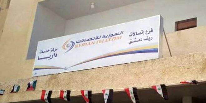 أعادت الشركة السورية للاتصالات مركز هاتف مدينة داريا إلى الخدمة بعد إصلاح الأضرار التي لحقت به جراء الإرهاب وأدت إلى انقطاع دام أكثر من 8 سنوات.