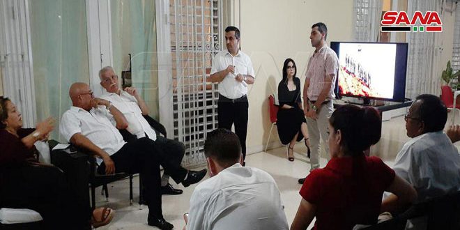 وأكد الإعلاميون الكوبيون خلال لقاء مع السفير السوري في كوبا الدكتور إدريس ميا إن “انتصار سورية في معركتها ضد الإرهاب هو انتصار لكل شرفاء العالم” لافتين إلى ما تم تحقيقه في سورية بفضل تضحيات وبطولات الجيش العربي السوري في مواجهة التنظيمات الإرهابية.