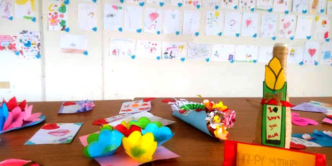 وقدم الأطفال المشاركون من مدرستي الشهيدين منير الزاقوت ونواف العقباني نحو 250 لوحة تعبيرية، مرسومة بالألوان الخشبية كرسائل من الأطفال بعيد الأم، وذلك حسب المشرف الفني على المعرض أدهم عز الدين الذي نوه بمواهب المشاركين، ولفت إلى وجود مشاركات أيضاً بأعمال يدوية لطلاب بعمر أكبر.