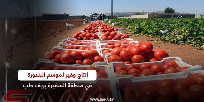 إنتاج وفير لموسم البندورة في منطقة السفيرة بريف حلب