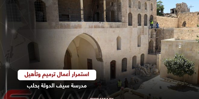 استمرار أعمال ترميم وتأهيل مدرسة سيف الدولة بحلب
