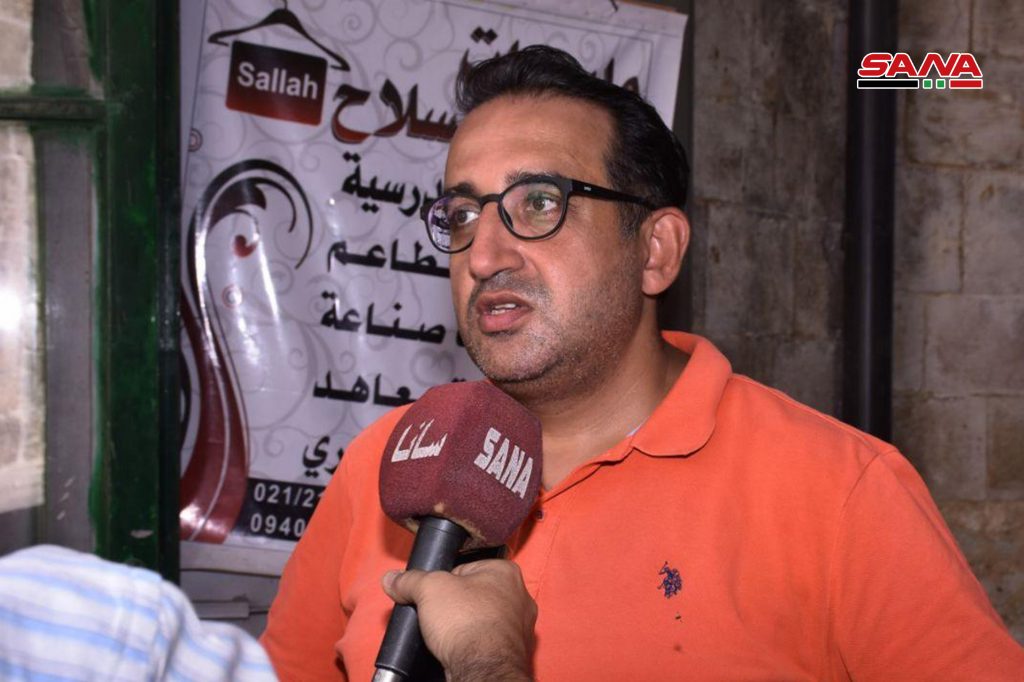 وأعرب جمال مليس صاحب محل لبيع الخضار والفواكه عن شكره لمجلس مدينة حلب والجهات المعنية لسرعة إنجاز أعمال الترميم في السوق وطالب بتامين وإيصال الخدمة الهاتفية للمحال التجارية ولفت يحيى أبو شالة بائع عطور واحمد صباغ صاحب محل لبيع المكسرات ووضاح سلو صاحب محل لبيع الحقائب إلى مسارعتهم في العودة لمحالهم التجارية لأنهم من أبناء الحي ولهم فيه ذكريات قديمة ودعوا أصحاب المحال التجارية إلى إعادة افتتاح محالهم من جديد.