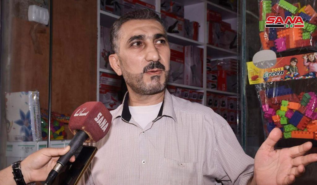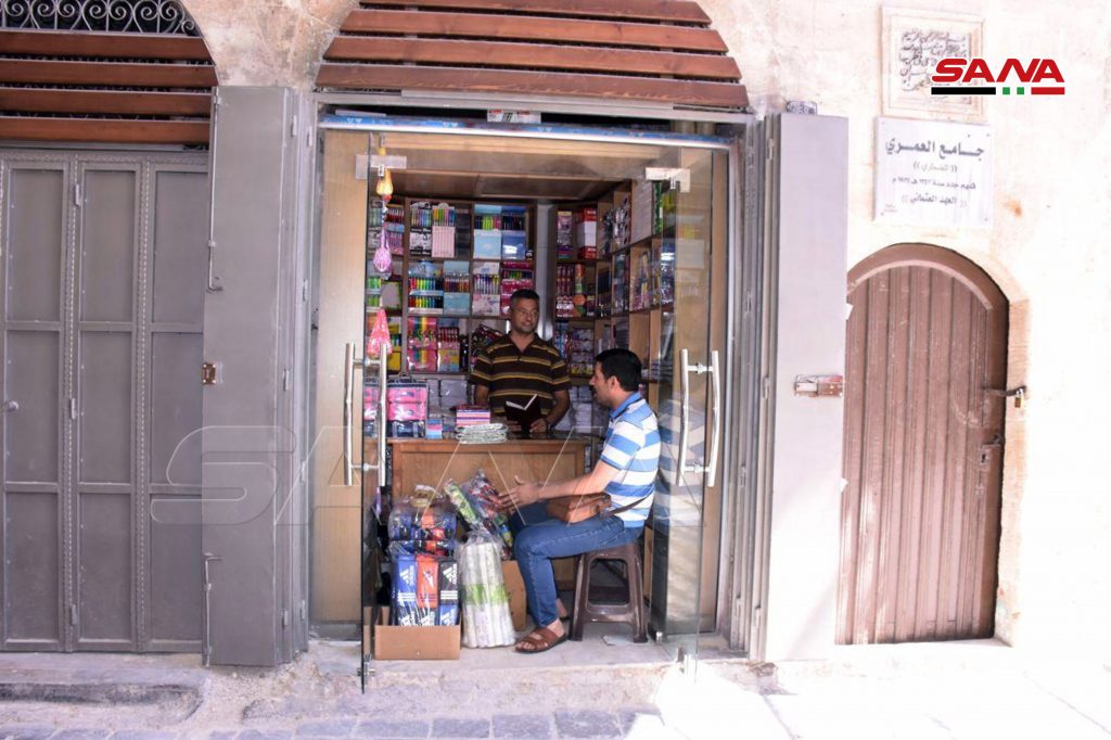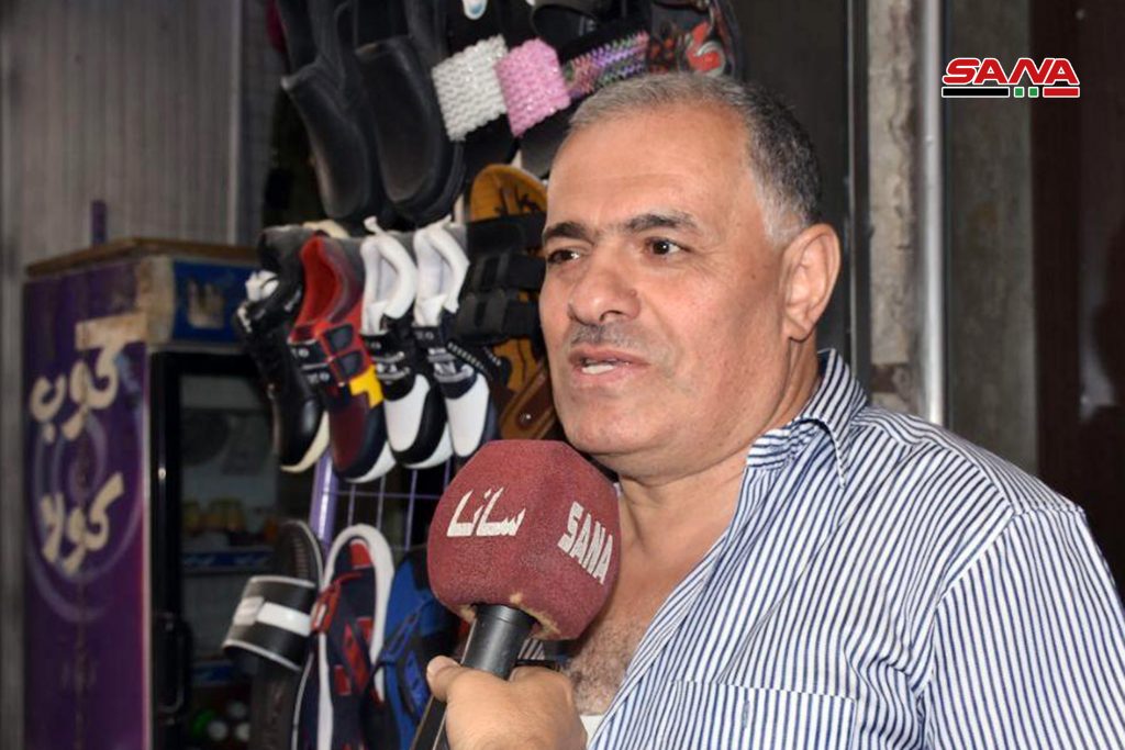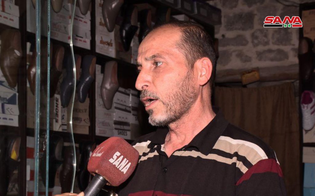 كاميرا سانا جالت ضمن السوق ورصدت آراء عدد من أصحاب المحال الذين عبروا عن فرحتهم بعودتهم للسوق والعمل بمحالهم من جديد حيث أوضح أبو مصطفى صاحب محل لبيع اللوازم المدرسية والقرطاسية أنه عاد من جديد لممارسة عمله وبيع اللوازم المدرسية للأطفال وطالب الجهات المعنية بإيصال التيار الكهربائي للسوق بينما دعا أحمد ناعورة صاحب محل لبيع الأحذية