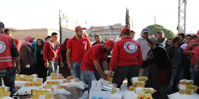 بهدف تأمين احتياجات الأسر الأكثر احتياجا أوصل فرع الهلال الأحمر العربي السوري في درعا اليوم دفعة جديدة من المساعدات الغذائية لبلدة الحارة بريف المحافظة الشمالي.