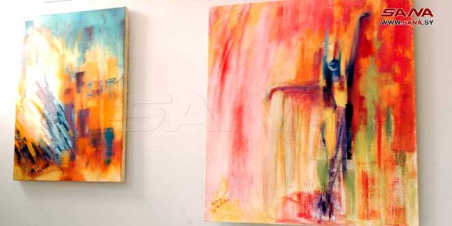 لوحات فنية جمعت بين التصوير الزيتي وتقنية الكولاج، قدمتها المهندسة الشابة هبة العبد ضمن معرضها الفردي الأول الذي افتتحه فرع اتحاد الفنانين التشكيليين بالسويداء اليوم في صالة نادي آرام الثقافي.