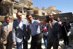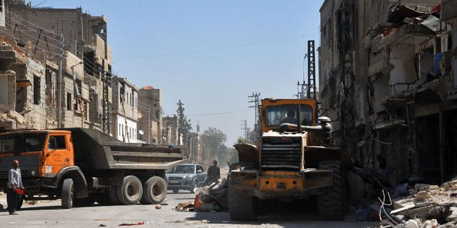 اطلع محافظ ريف دمشق المهندس علاء منير ابراهيم وأمين فرع ريف دمشق لحزب البعث العربي الاشتراكي الدكتور همام حيدر على سير عمليات ترحيل الأنقاض وإعادة تأهيل البنى التحتية لمنطقة السبينة.
