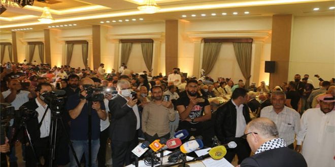 وشدد على ضرورة دعم سورية قلب العروبة النابض في مواجهة الحرب العدوانية التي تتعرض لها لتمسكها بالقضية الفلسطينية وبقضايا أمتها ولإصرارها على تحرير كامل التراب العربي المغتصب.