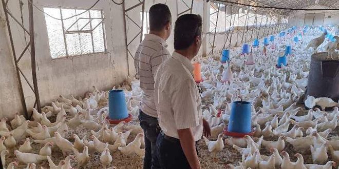 للتخفيف من معاناة مربي الدواجن في ريف دمشق بعد الخسائر التي لحقت بهم نتيجة الارتفاع الكبير لدرجات الحرارة خلال الأيام الماضية، اتخذت مديرية الزراعة في المحافظة جملة من الإجراءات، منها متابعة الوضع الصحي والإنتاجي بشكل يومي، وإعطاء اللقاحات للطيور في الصباح الباكر والتعليف المبكر والمسائي ودعم الأعلاف بالفيتامينات والأحماض الأمينية، ولا سيما فيتامين “سي”.