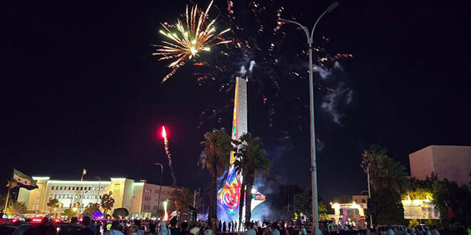 واختُتم الحفل بعرض للألعاب النارية وصور رمزية من الدرونات تمثل الانتصار والتحرر من الاستبداد، ورفع شعار “سوريا الجديدة لكل السوريين”، لتُختتم الفعالية بصورة “العقاب السوري” متوجاً بثلاث نجمات ذهبية ترمز إلى وحدة الوطن وعزيمته وتجديد هويته.