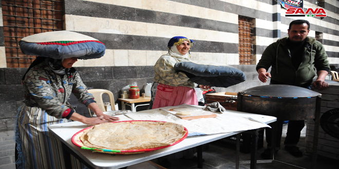 ضمن أجواء تراثية واحتفالاً برأس السنة السورية التقت مجموعة من الحرف اليدوية التقليدية في خان أسعد باشا بدمشق القديمة ضمن مهرجان (الخبز السوري) الذي أقامته مديرية سياحة دمشق بالتعاون مع اتحاد الجمعيات الحرفية على مدى ثلاثة أيام.