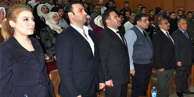 أقام الاتحاد الوطني لطلبة فلسطين بالتعاون مع المنظمات الطلابية العربية في جامعة تشرين اليوم احتفالية “يوم الأرض” بمناسبة الذكرى41 ليوم الأرض وذلك في مدرج الباسل في كلية العلوم.