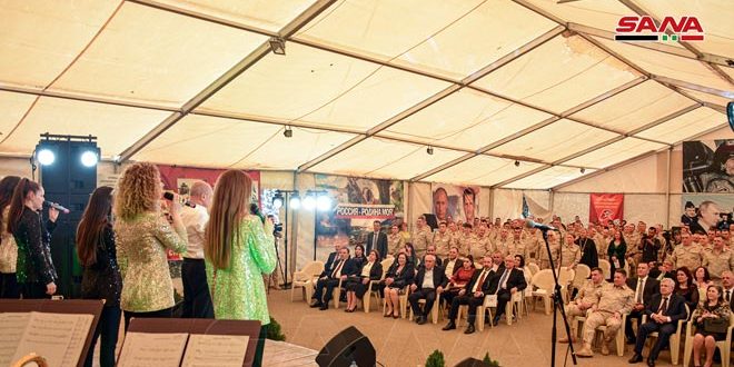 بمناسبة الذكرى الخامسة والسبعين لجلاء المستعمر الفرنسي عن أرض سورية وفي إطار علاقات الصداقة الوطيدة التي تجمع الجيشين السوري والروسي أقيم اليوم في القاعدة العسكرية الروسية بحميميم احتفال مركزي بمشاركة فعاليات رسمية وشعبية روسية وبحضور العماد علي عبد الله أيوب نائب القائد العام للجيش والقوات المسلحة نائب رئيس مجلس الوزراء وزير الدفاع ومنصور عزام وزير شؤون رئاسة الجمهورية ومحافظي اللاذقية وطرطوس وأمناء الفروع الحزبية في المنطقة الساحلية وعدد من كبار ضباط القيادة العامة للجيش والقوات المسلحة.