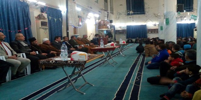 أقامت مديرية أوقاف درعا والسويداء اليوم احتفالاً دينياً بمناسبة عيد المولد النبوي الشريف وذلك في مسجد عبدالرحمن بن عوف بمدينة درعا.