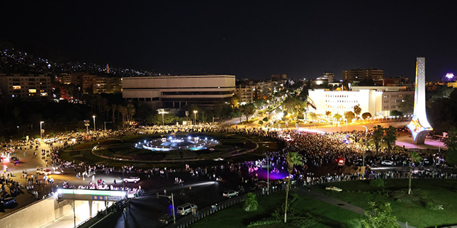 احتفال شعبي وعرض لطائرات الدرون بدمشق بمناسبة إطلاق الهوية البصرية للجمهورية العربية السورية 2025-07-05