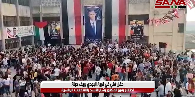 احتفال في قرية البودي بريف جبلة بفوز الدكتور بشار الأسد بمنصب رئيس الجمهورية