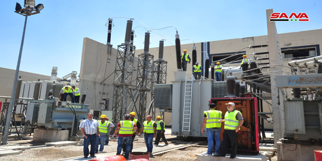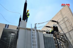 وبعدها اطلعت اللجنة على المراحل التي أنجزتها ورشات وزارة الكهرباء بتأهيل وصيانة محطة تحويل القابون /3/ 230/66 كيلوفولط التي دمرتها التنظيمات الإرهابية بالكامل حيث تم وضع محولتين منها بالخدمة كونها تعد من أكبر محطات التحويل ووضعها في الخدمة كاملة سيزيد من وثوقية التغذية الكهربائية.