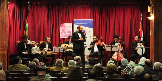وبعدها استمع الحضور وتفاعل مع عدد من الأغاني المنوعة التي قدمها المغني الشاب غزوان الزعيم بصوته المتمكن بمرافقة العازفين الشباب الموهوبين /طارق خوري/ على الكمان و/سامي مواس/ على العود و/جرير عانا/ على القانون و/مهدي المهدي/ على الفيولا و/سامر علان/ على التشيللو و/فادي الخوري/ على الايقاع .