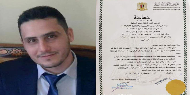 حصل طبيب الأسنان نور العموري على براءة اختراع سورية عن اختراعه تقنية حديثة في مجال تقويم الأسنان ذات ميزات إضافية مبتكرة تحقق نتائج أفضل بكلفة أقل.