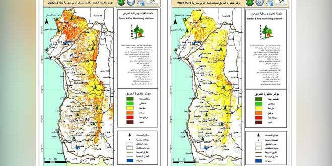 وأوضحت المنصة عبر صفحتها على موقع التواصل الاجتماعي “فيسبوك” أنه يتم إعداد الخرائط بالتعاون مع المديرية العامة للأرصاد الجوية ووزارة الزراعة والإصلاح الزراعي “مديرية الحراج” داعية إلى أخذ الحيطة والحذر من إشعال النار والإبلاغ عن أي حريق أو دخان على الأرقام المجانية 188 و113.