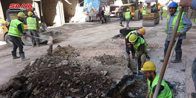 استبدال شبكة الصرف الصحي بحي الفردوس في حلب المتضررة جراء الإرهاب
