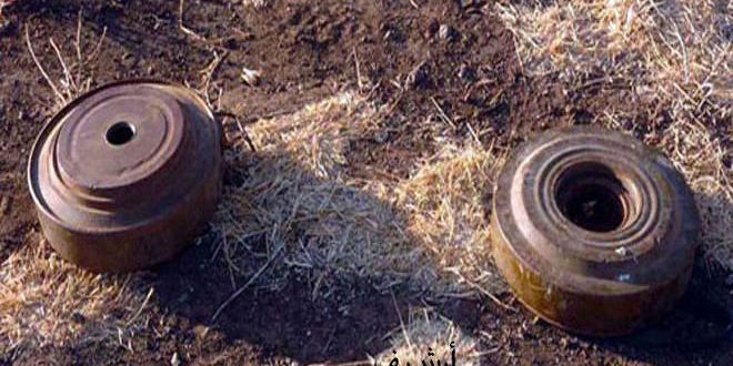 استشهد مدنيان وأصيب 5 آخرون بجروح متنوعة نتيجة انفجار لغمين من مخلفات التنظيمات الإرهابية في منطقة الطيحة بريف درعا الشمالي الغربي على الحدود الادارية لمحافظة القنيطرة.