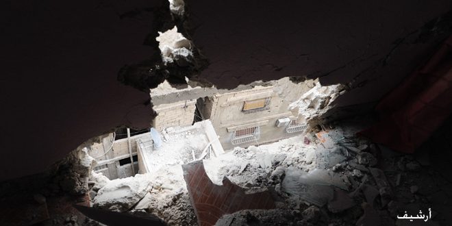 وحسب المصدر “أصيب شخصان بجروح جراء سقوط قذيفة في حي باب توما أطلقها إرهابيون” بعد ظهر اليوم.