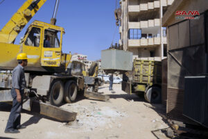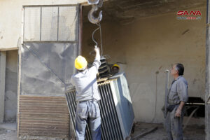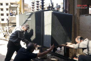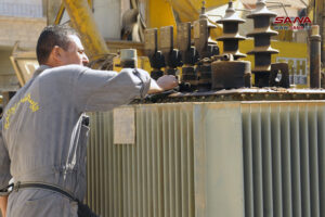وخلال عمله على مركز تحويل بأشرفية صحنايا 61 أشار خالد عيسى رئيس شعبة صيانة مراكز التحويل بريف دمشق إلى أنهم يعملون اليوم على زيادة استطاعة المركز لمعالجة الفصل المتكرر في المنطقة المحيطة به.