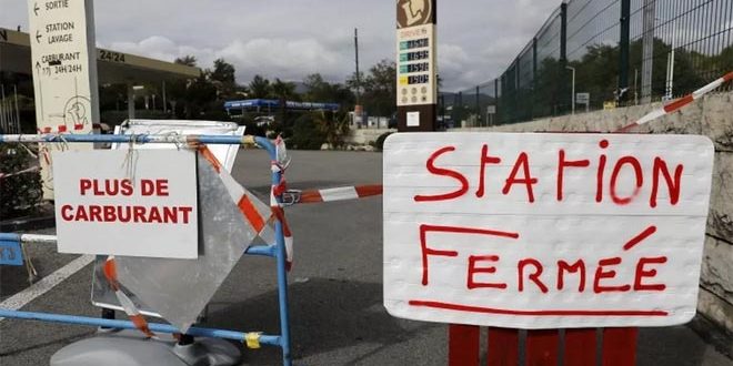 يتواصل الإضراب في مصافي النفط في فرنسا اليوم، حيث مازال المضربون يمنعون نقل المحروقات إلى محطات الوقود التي تعاني من شح وقلة في المخزون.